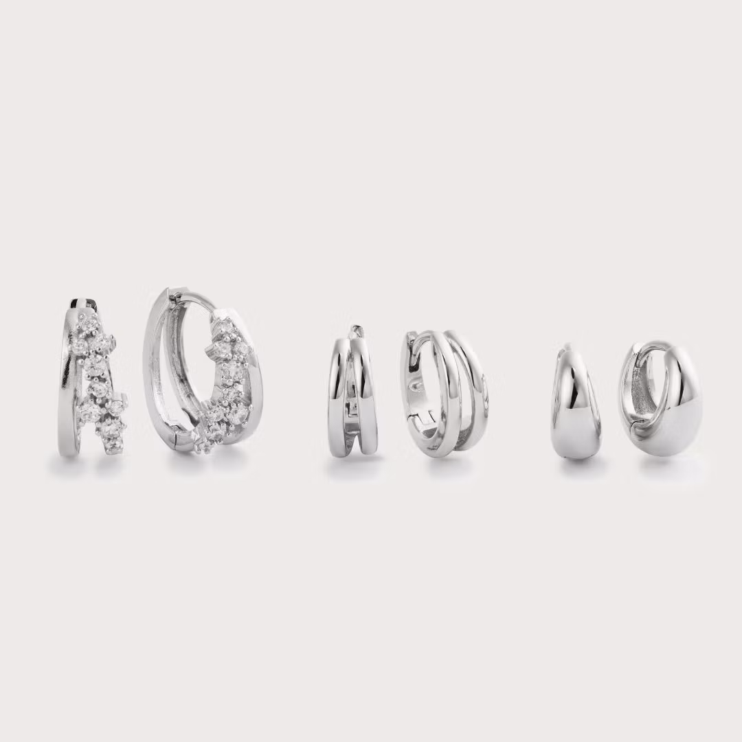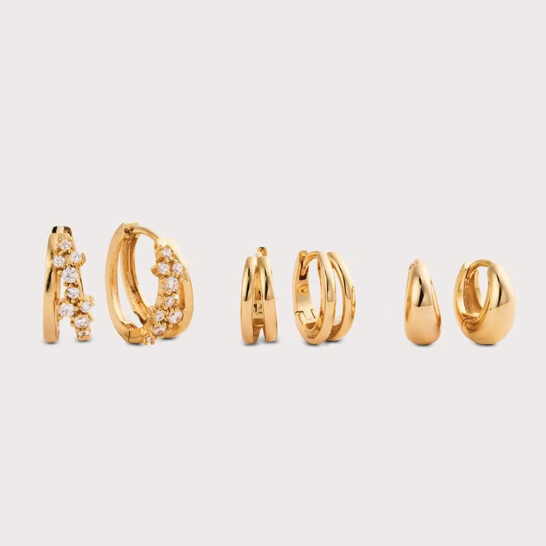 Die ultimative Hoops Kombination! Donna, Whisper hoops und Dewdrop – drei Hoop Favoriten mit minimalistischer Gestaltung. Leicht zu tragen und leicht zu lieben.