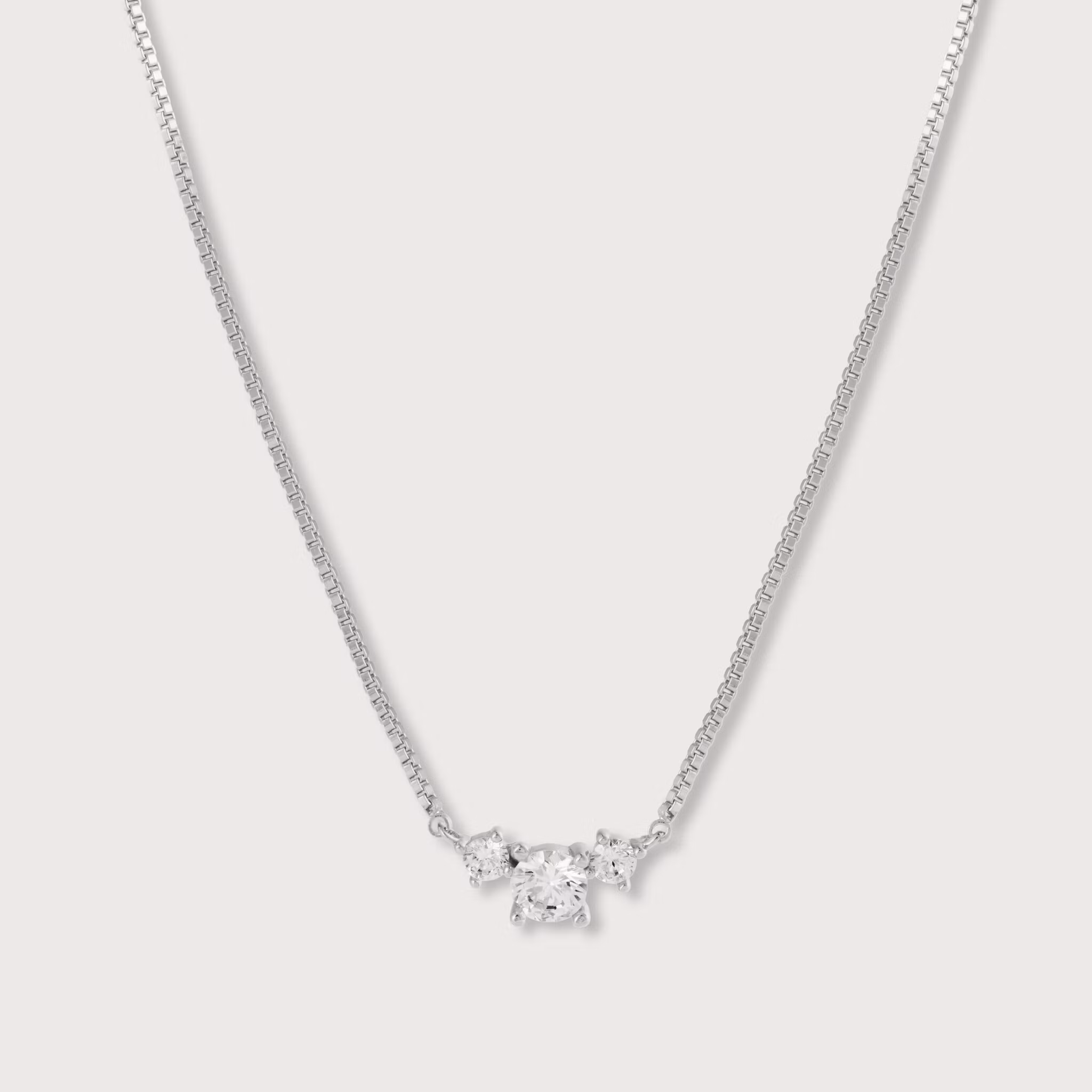 Eine Halskette mit drei handgefassten Zirkonia, so minimalistisch, dass du kaum bemerkst, dass du sie trägst.