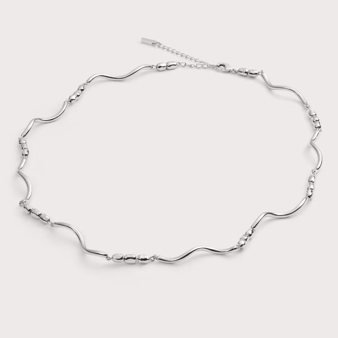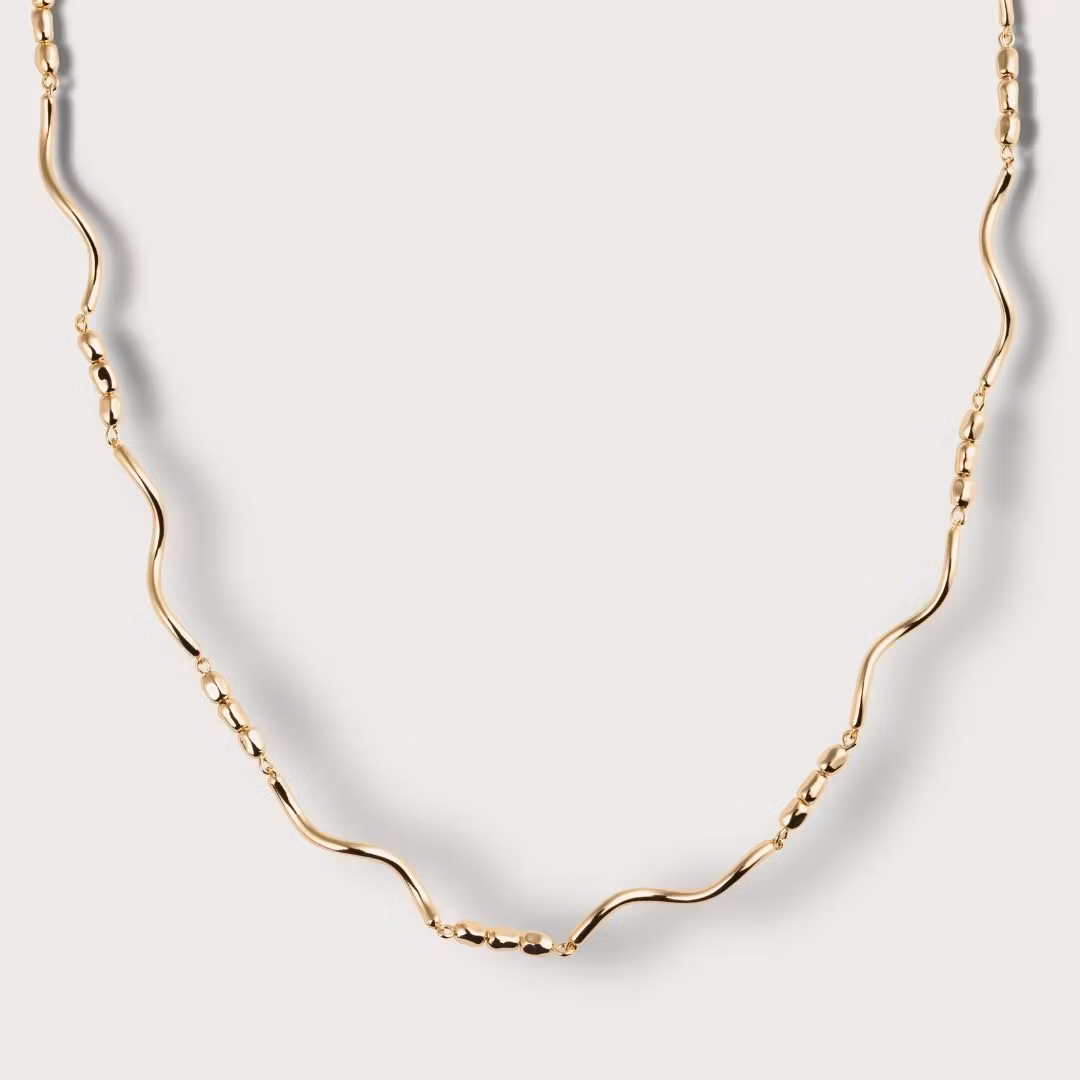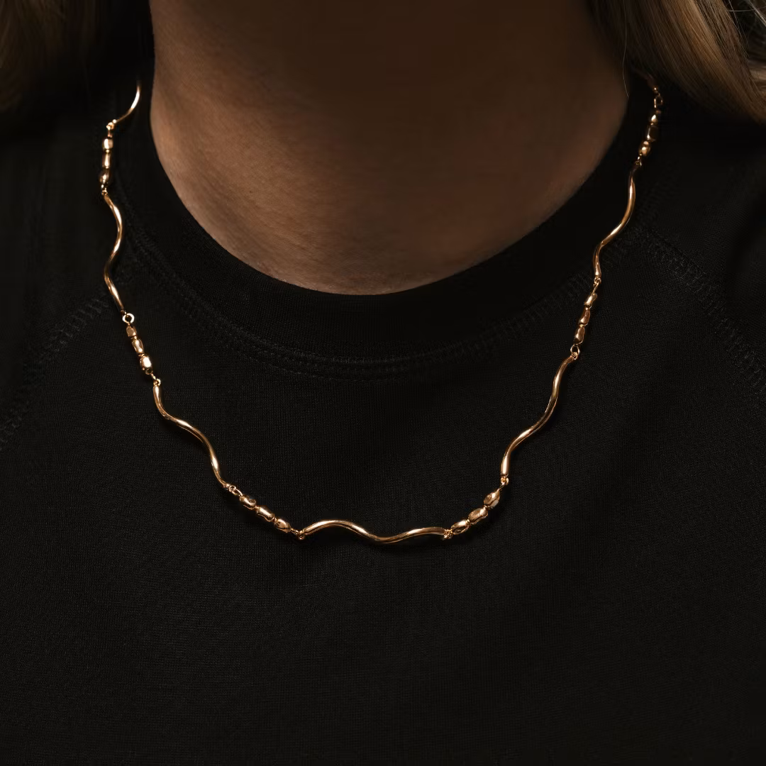 Wellenförmige Strukturen mit feinen Details, die an die Schätze des Meeres erinnern. Eine neue Lieblingshalskette für jeden Tag.