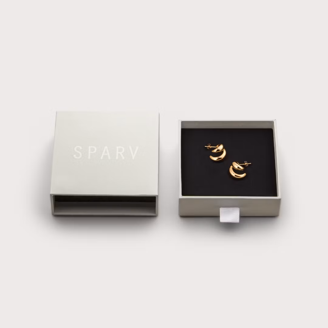 Core werden paarweise verkauft und sind in zwei sorgfältig ausgewählten Ausführungen erhältlich: 18K vergoldet und silberbeschichtete Messing. Unser gesamtes Schmucksortiment ist nickelfrei, und unser vergoldeter Schmuck hat eine extra dicke Schicht aus 18K, sodass du ein langlebiges Schmuckstück erhältst. Jeder Schmuck wird sorgfältig in handgemachten Boxen aus recyceltem und FSC-zertifiziertem Papier verpackt.