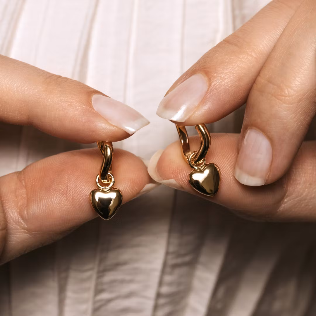 Herzförmige Ohrringe mit organischem Design und einem Herzanhänger. Ein schönes Geschenk für jemanden, den du liebst, oder für dich selbst.