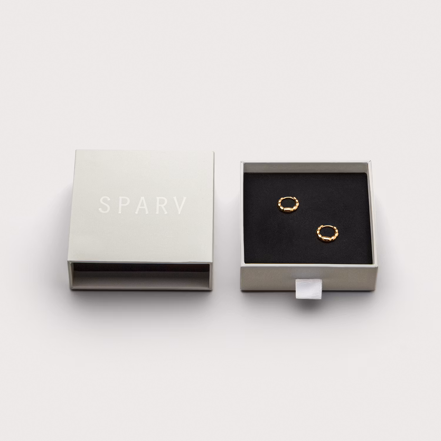 Nocturne werden paarweise verkauft und sind in zwei sorgfältig ausgewählten Ausführungen erhältlich: 18K vergoldet und silberbeschichtete Messing. Unser gesamtes Schmucksortiment ist nickelfrei, und unser vergoldeter Schmuck hat eine extra dicke Schicht aus 18K, sodass du ein langlebiges Schmuckstück erhältst. Jeder Schmuck wird sorgfältig in handgemachten Boxen aus recyceltem und FSC-zertifiziertem Papier verpackt.