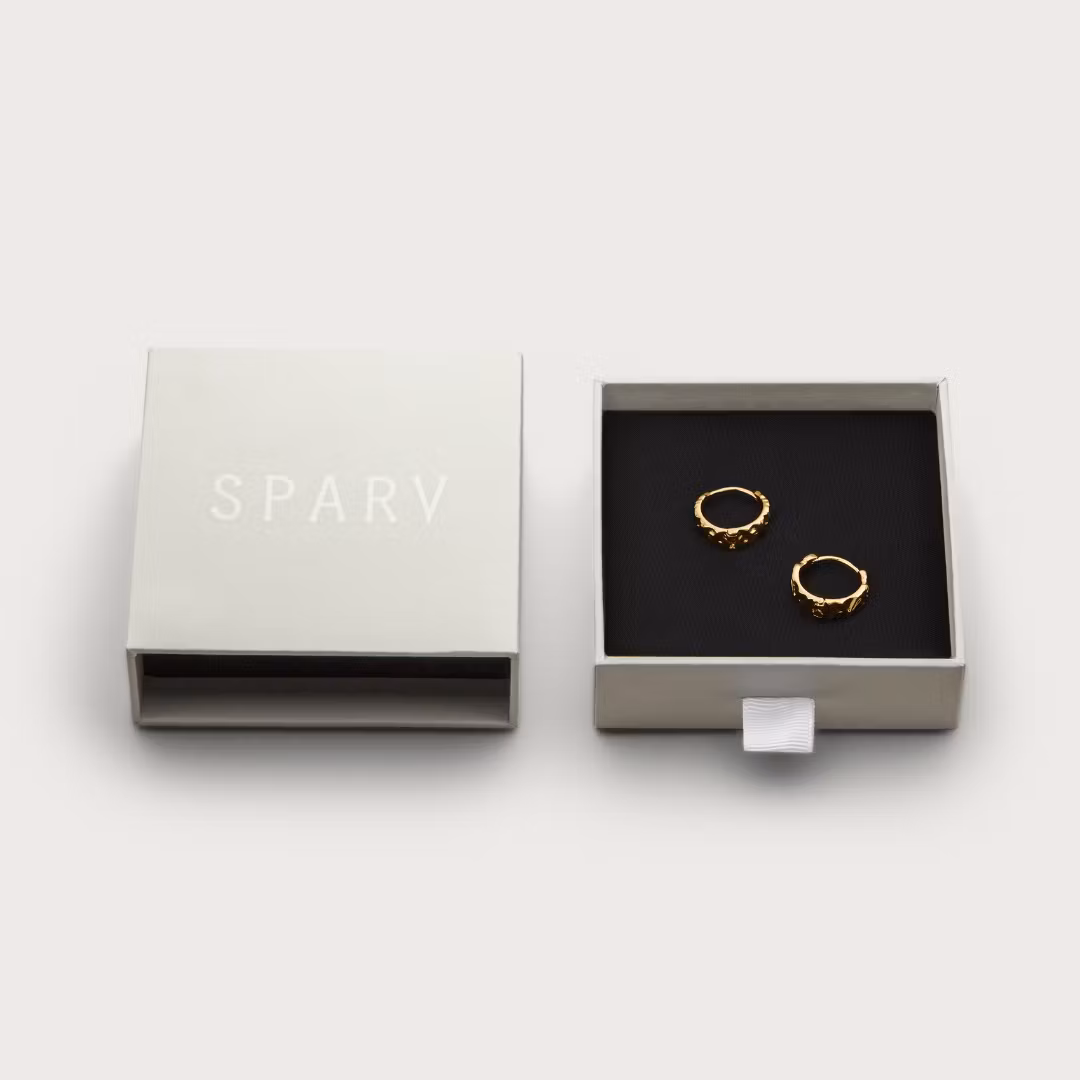 Storyline werden paarweise verkauft und sind in zwei sorgfältig ausgewählten Ausführungen erhältlich: 18K vergoldet und silberbeschichtete Messing. Unser gesamtes Schmucksortiment ist nickelfrei, und unser vergoldeter Schmuck hat eine extra dicke Schicht aus 18K, sodass du ein langlebiges Schmuckstück erhältst. Jeder Schmuck wird sorgfältig in handgemachten Boxen aus recyceltem und FSC-zertifiziertem Papier verpackt.
