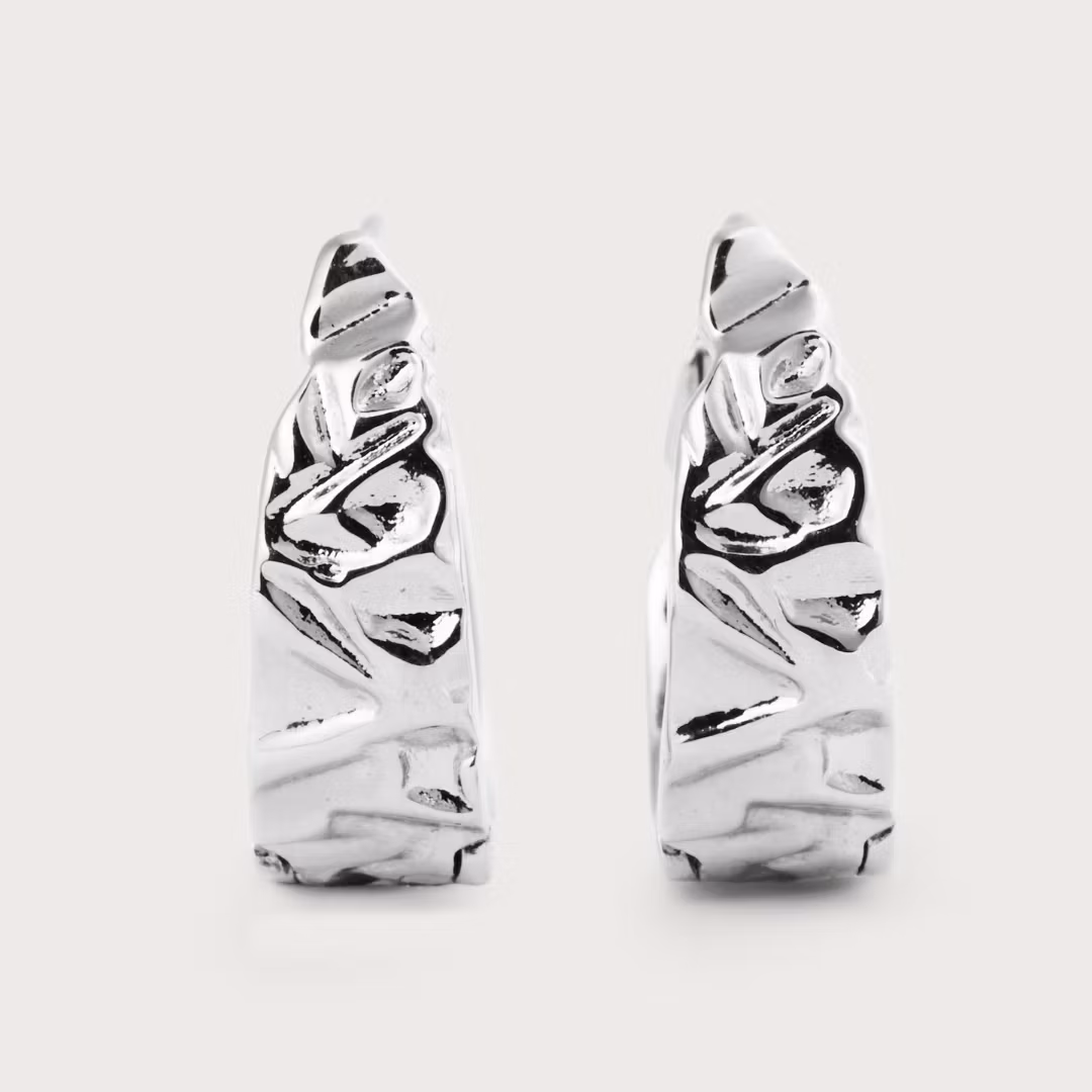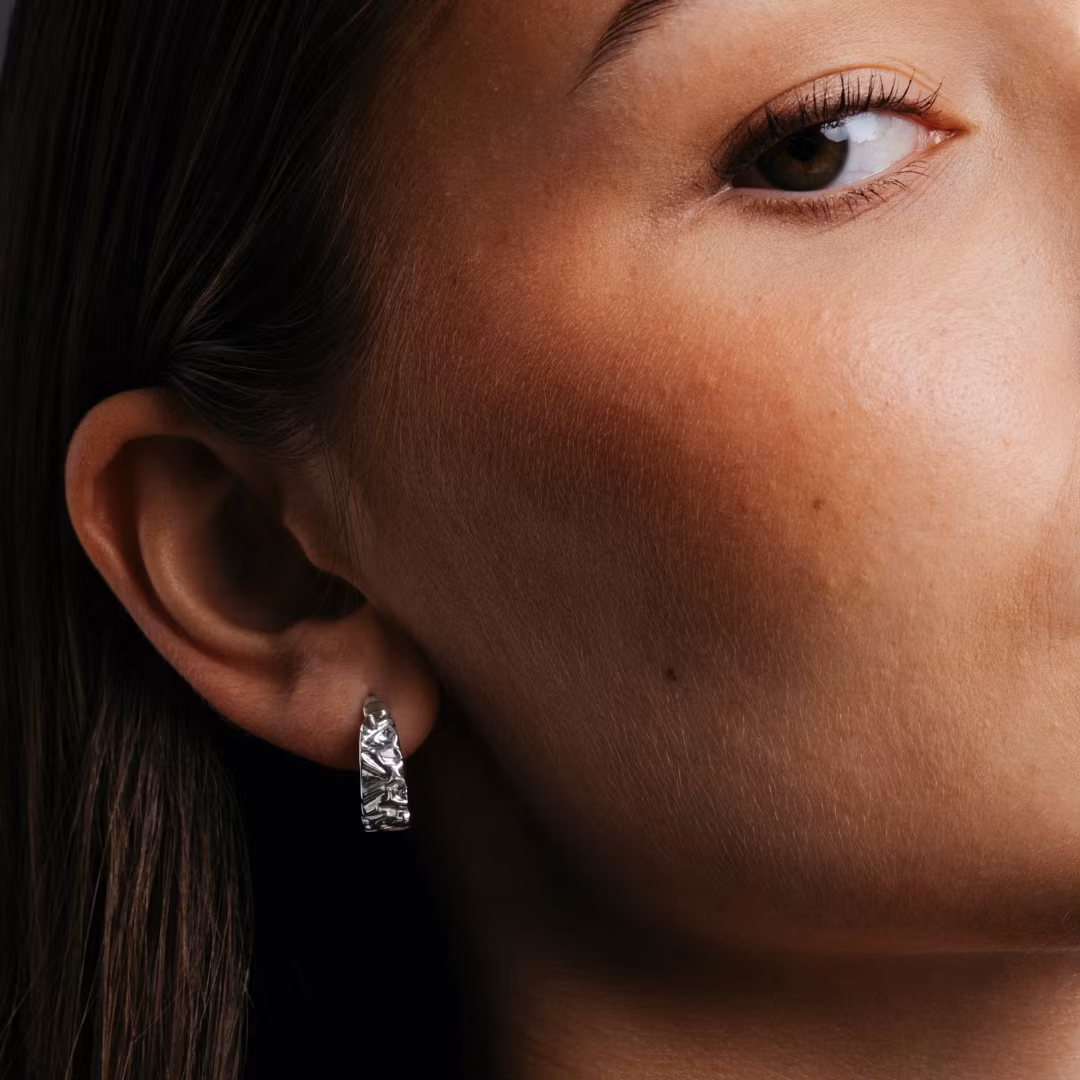 Chunky Hoops mit einer rohen, gehämmerten Oberfläche. Minimalismus mit einem Twist.